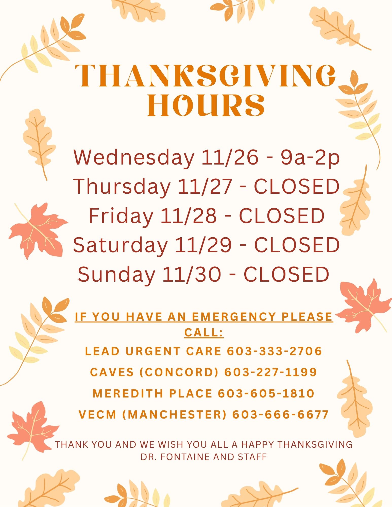At this time we ask that you wait in your vehicle and call the main number at 603-783-9411 when you arrive to check in for your appointment, we will then let you know which exam room you can enter from the deck.